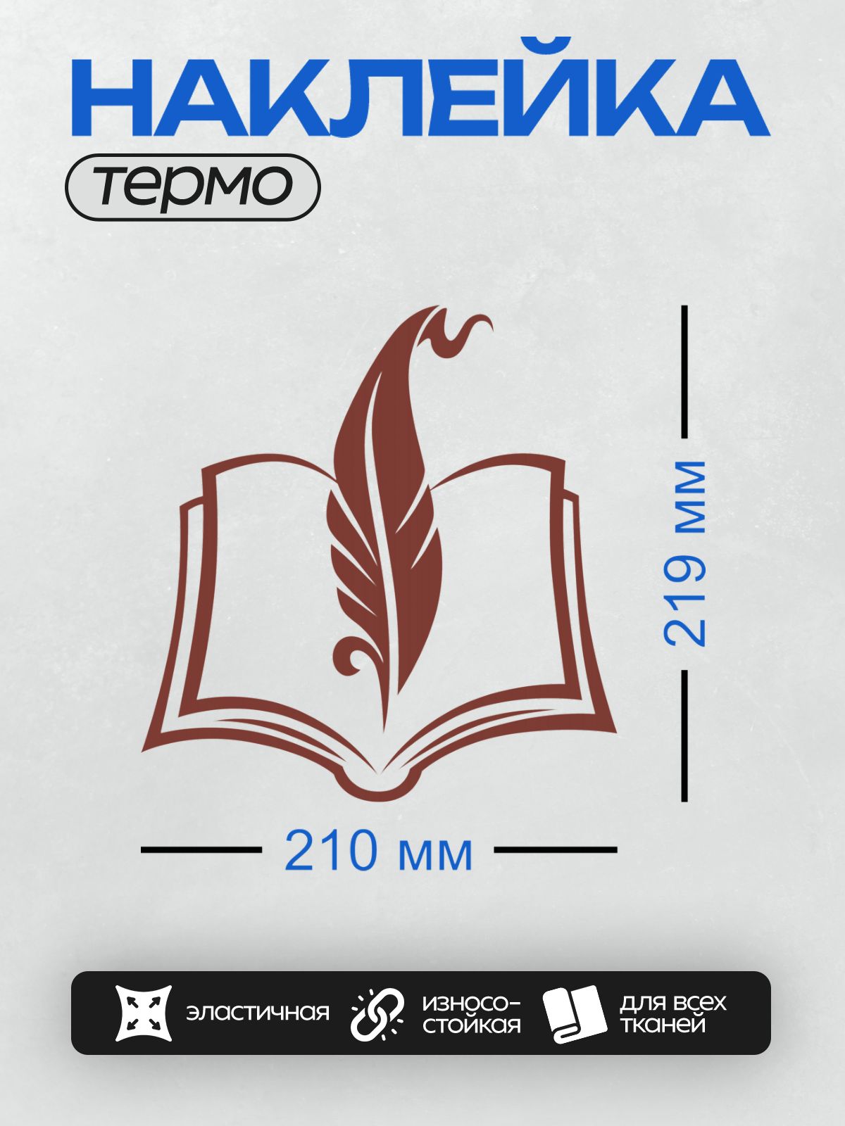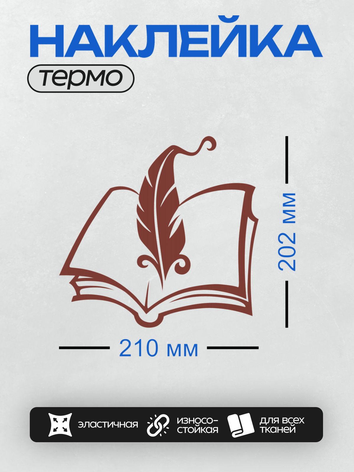 Термонаклейка на одежду DTF / Стилизованная книга с пером, символ литературы.