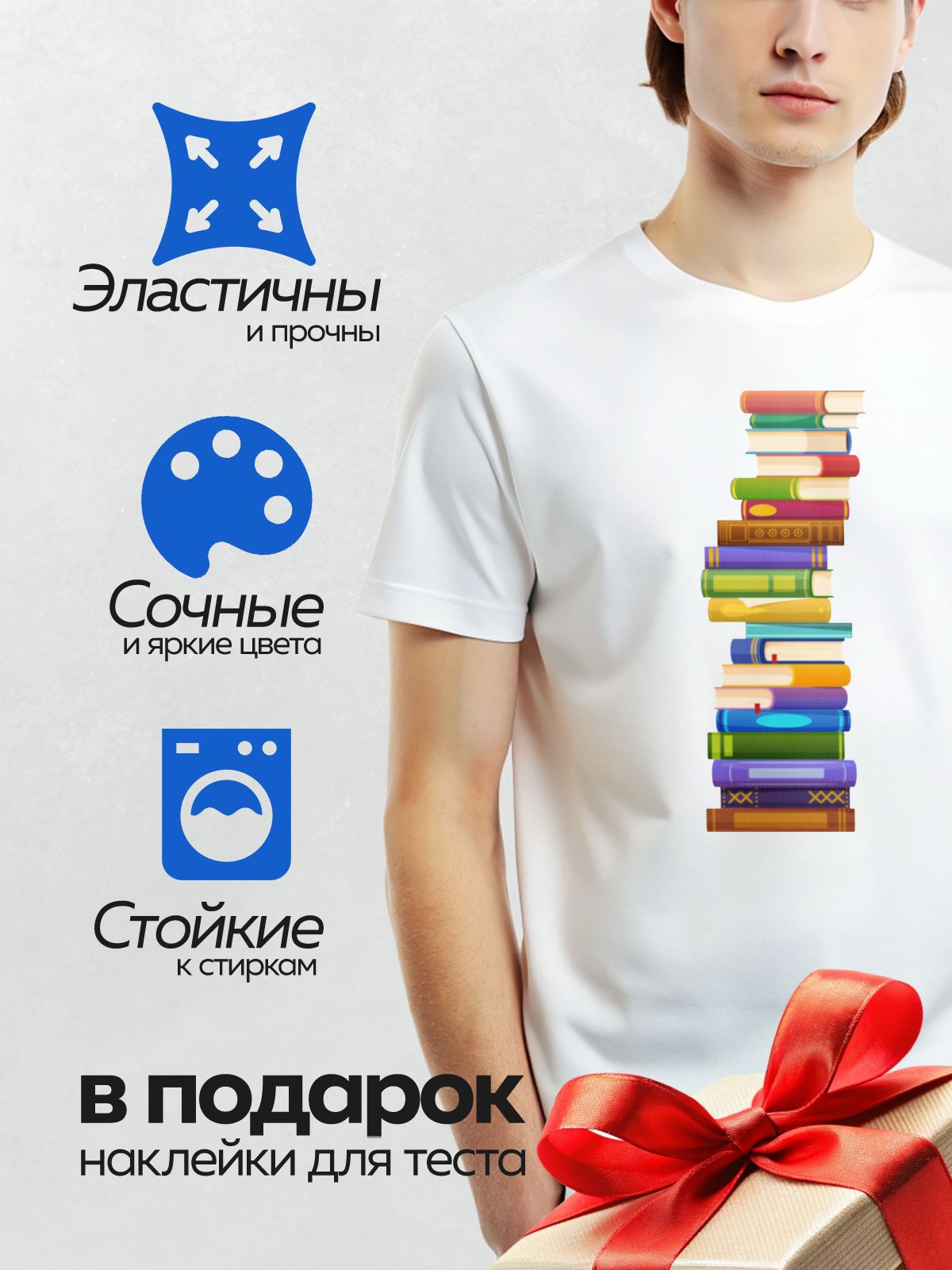 Термонаклейка на одежду DTF / Стопка разноцветных книг с яркими обложками.