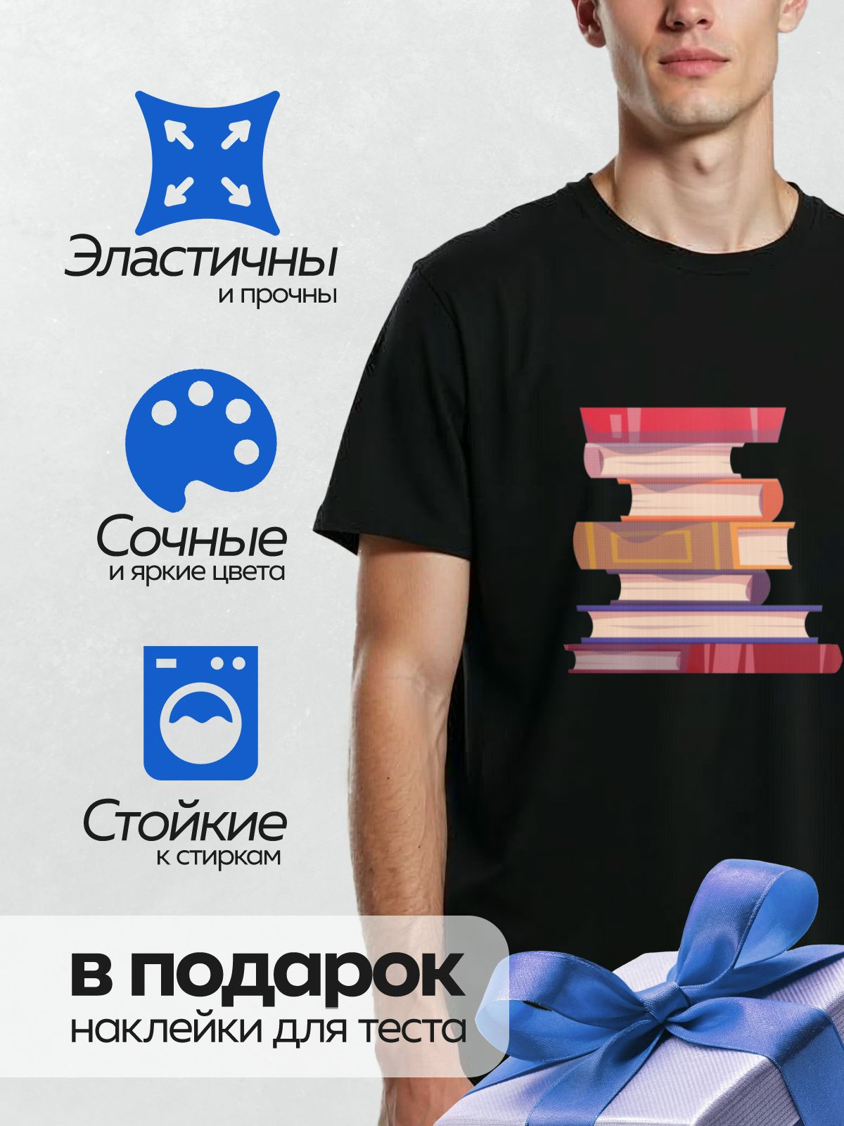 Термонаклейка на одежду DTF / Стопка разноцветных книг, аккуратно сложенных.