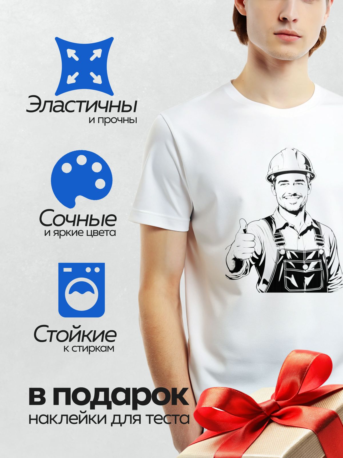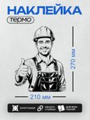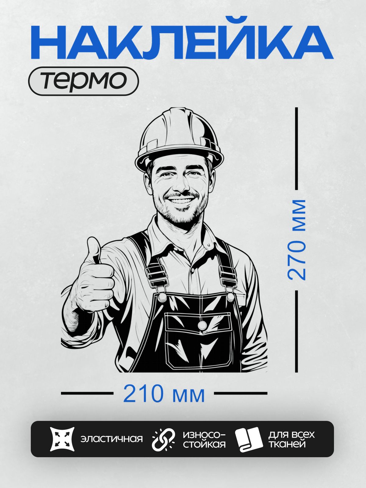Термонаклейка на одежду DTF / Строитель в каске улыбается и показывает “класс”.