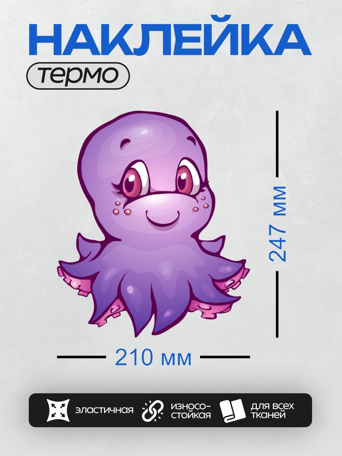 Дизайн: Фиолетовый мультяшный осьминог с большими глазами. — идеально подходит для декора и восстановления одежды.