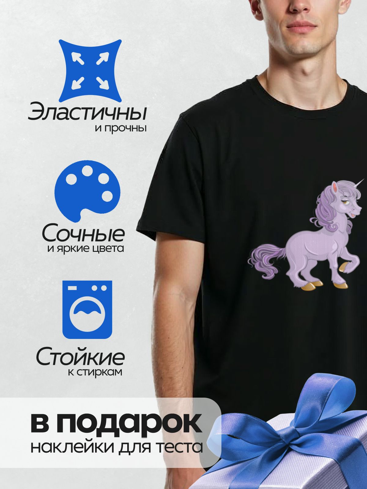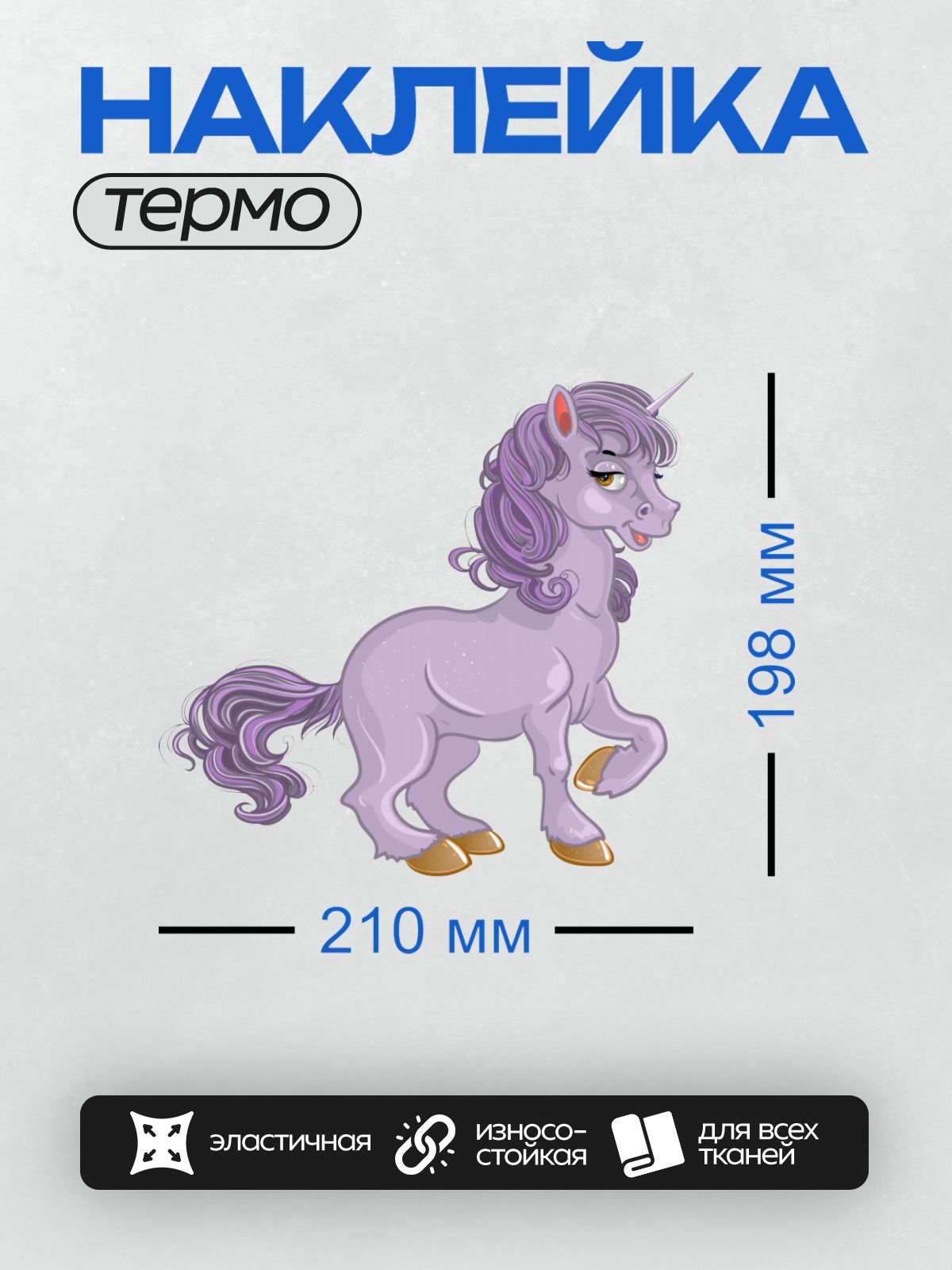 Термонаклейка на одежду DTF / Фиолетовый единорог с длинной гривой и хвостом.