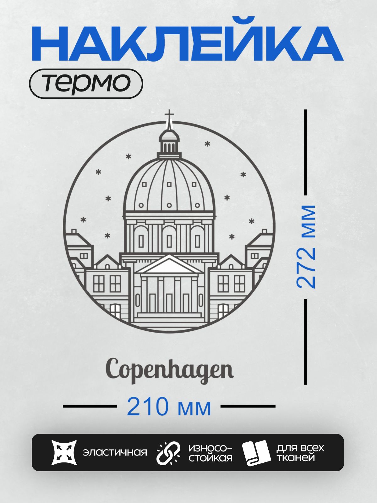 Дизайн: Церковь Фредерика в Копенгагене, стилизованный рисунок. — идеально подходит для декора и восстановления одежды.