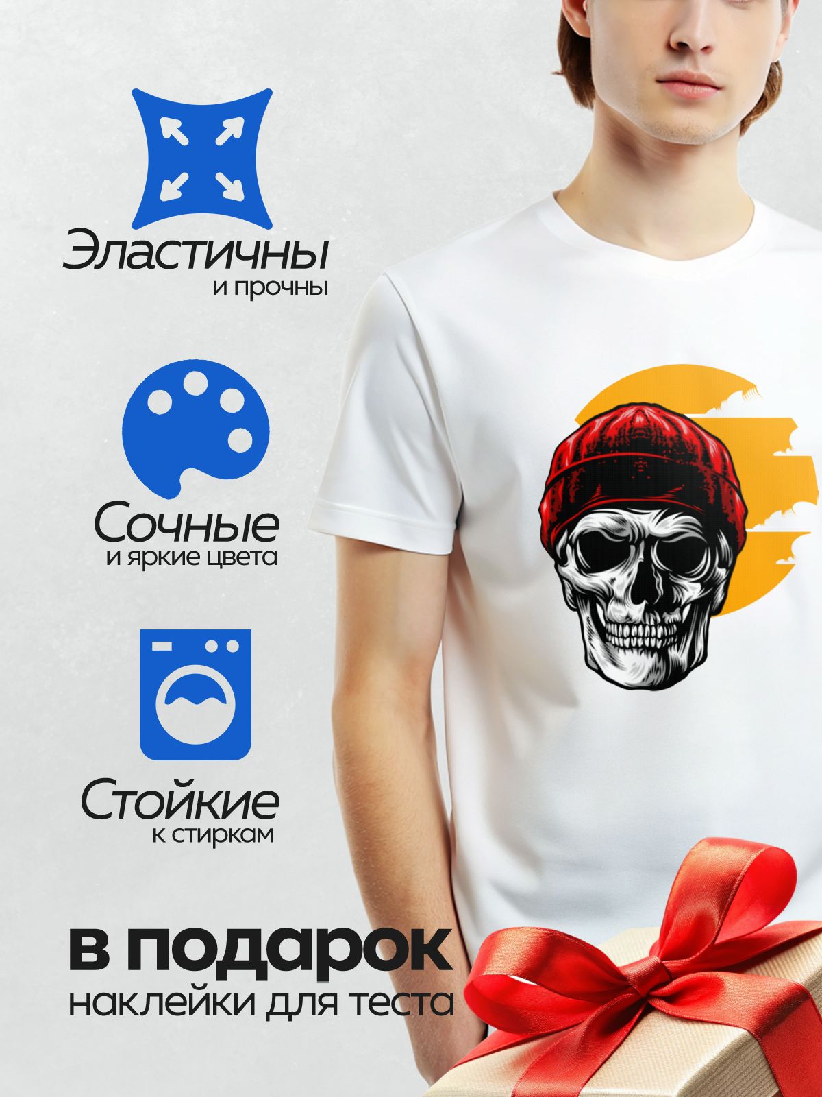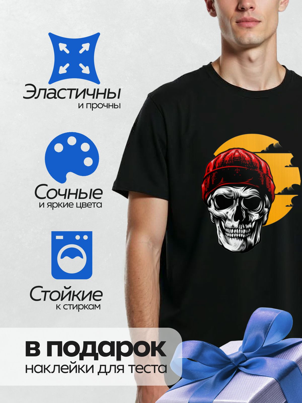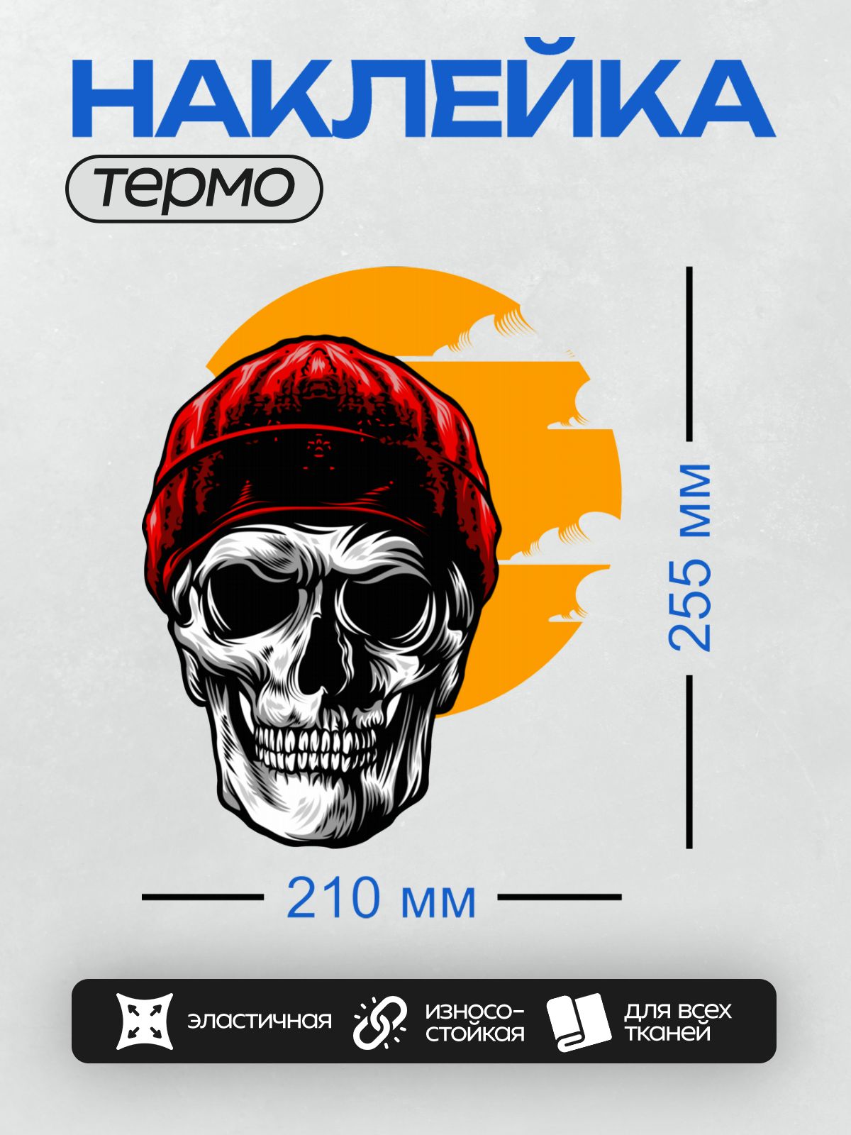 Термонаклейка на одежду DTF / Череп в красной шапке на фоне заката.