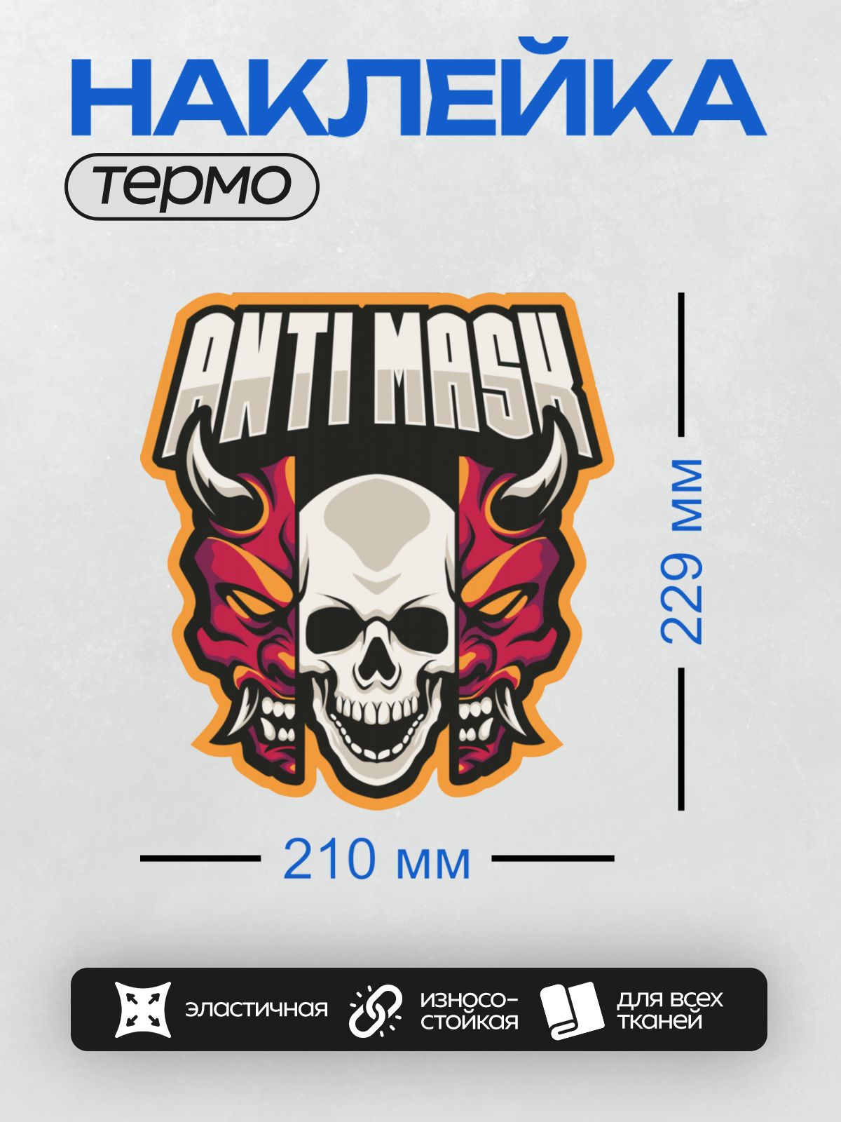 Дизайн: Череп с демоническими масками и надписью “Anti Masha”. — идеально подходит для декора и восстановления одежды.