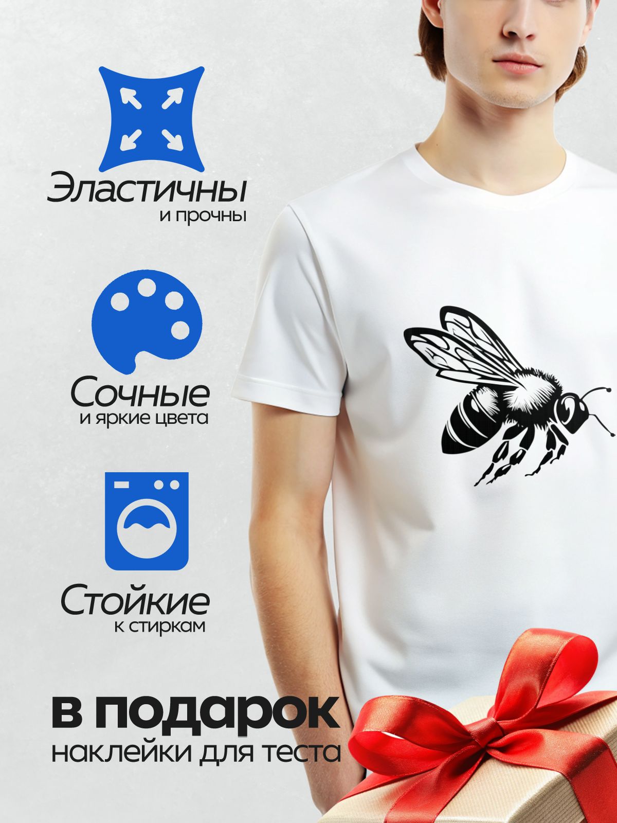 Дизайн: Черно-белая пчела в динамичном графическом стиле. — идеально подходит для декора и восстановления одежды.