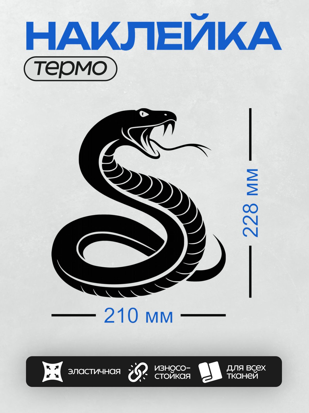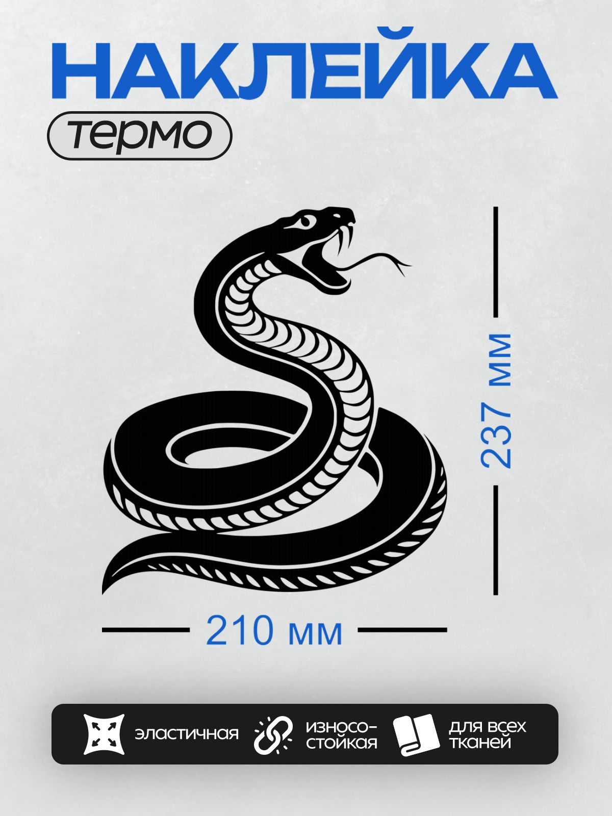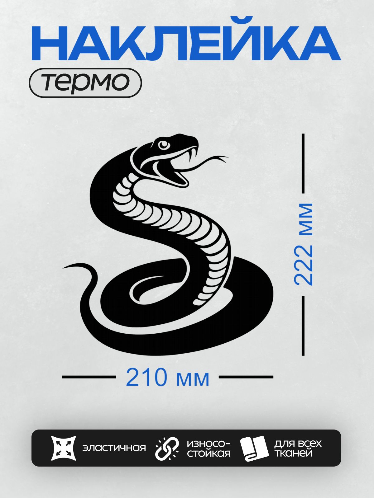 Дизайн: Черно-белая змея в минималистичном стиле. — идеально подходит для декора и восстановления одежды.