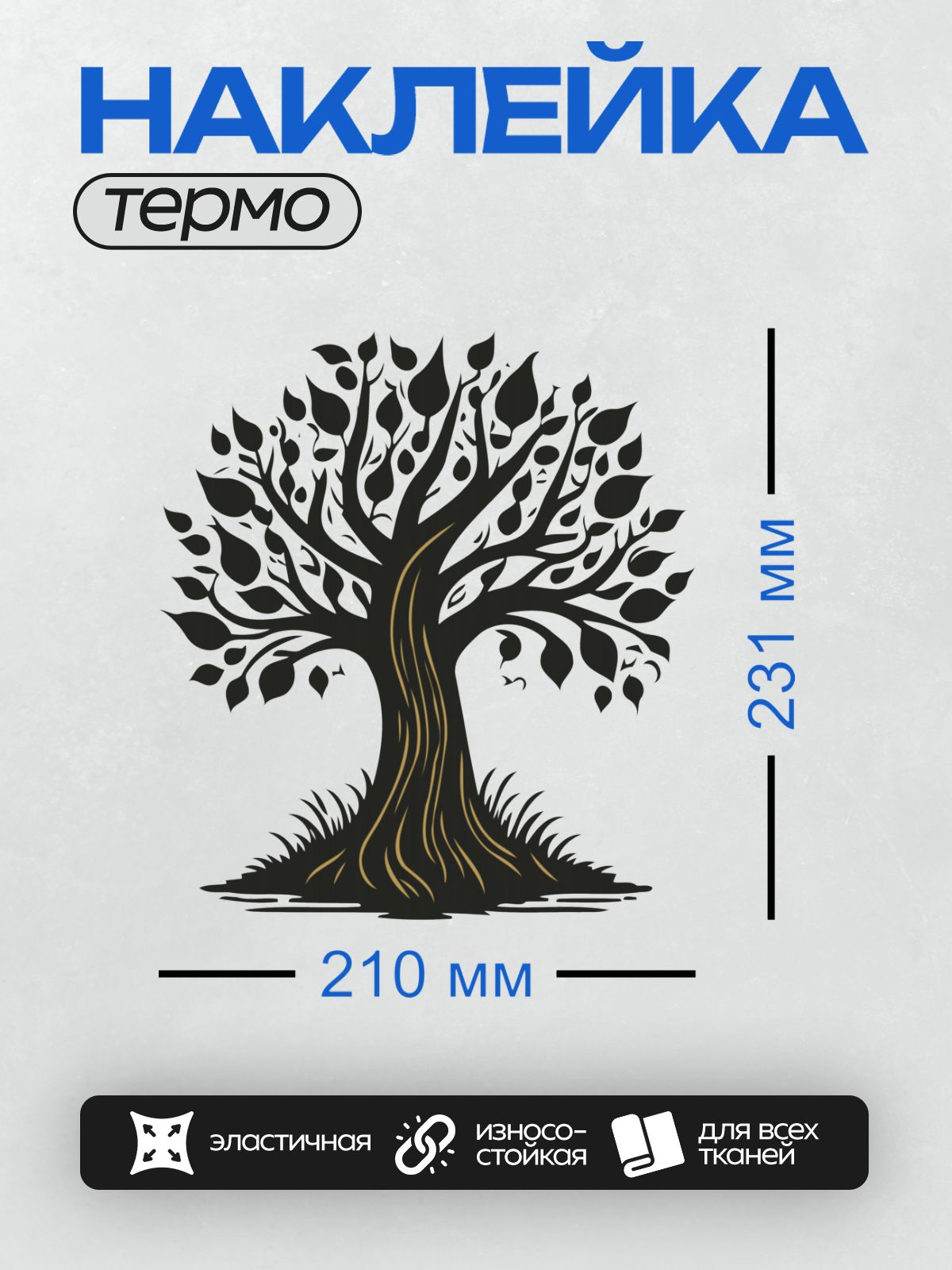 Дизайн: Черно-белое дерево с листьями и корнями. — идеально подходит для декора и восстановления одежды.