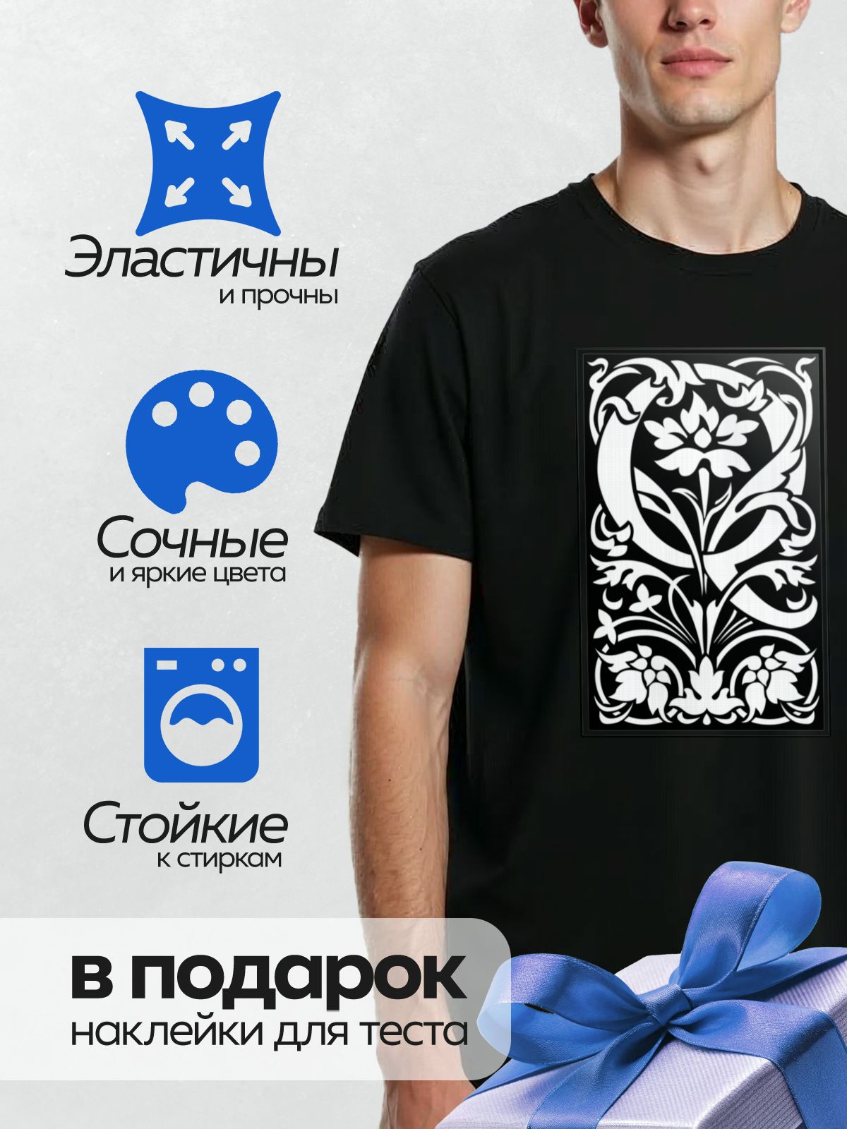 Дизайн: Черно-белый орнамент с цветочными элементами. — идеально подходит для декора и восстановления одежды.