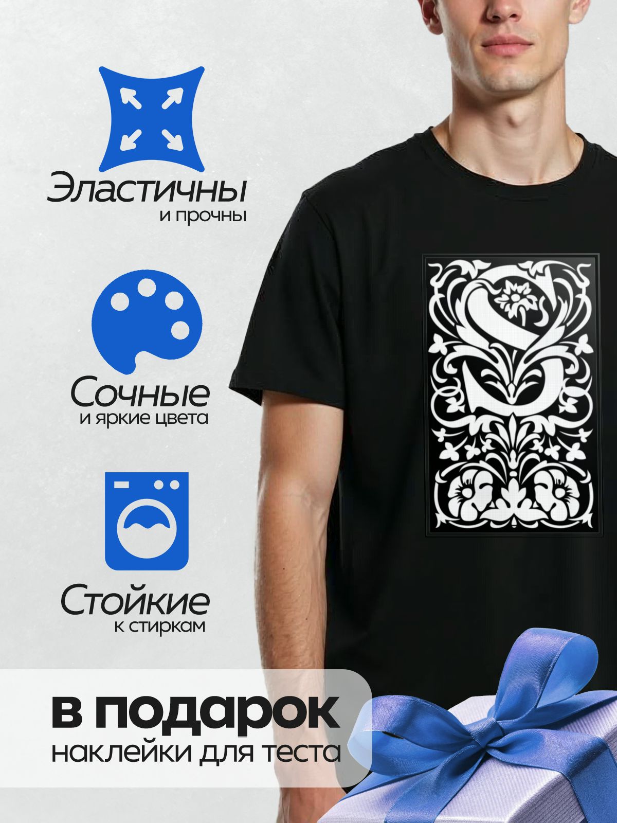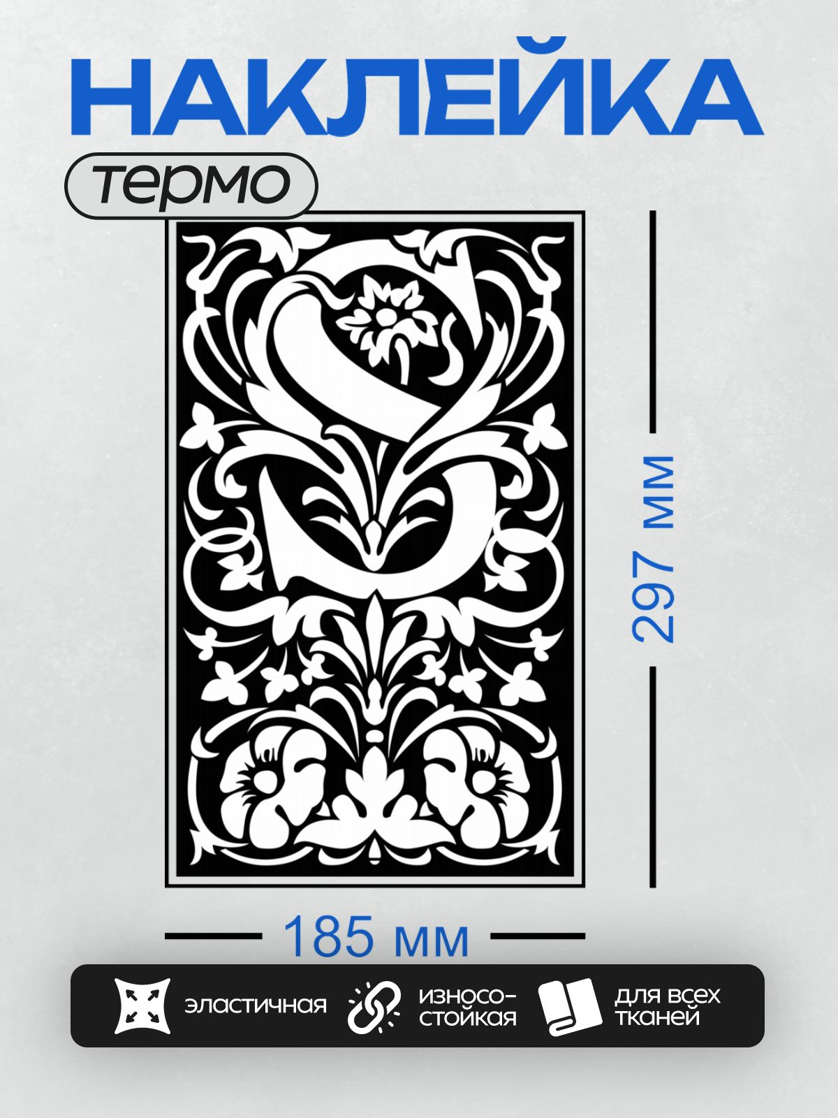 Термонаклейка на одежду DTF / Черно-белый орнамент с завитками и цветочными элементами.