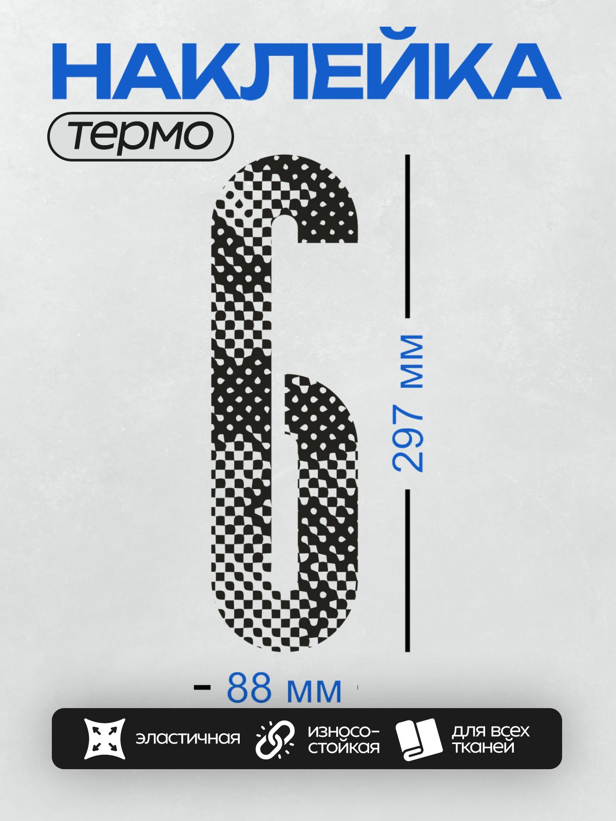 Дизайн: Черно-белый клетчатый узор в форме цифры 6. — идеально подходит для декора и восстановления одежды.