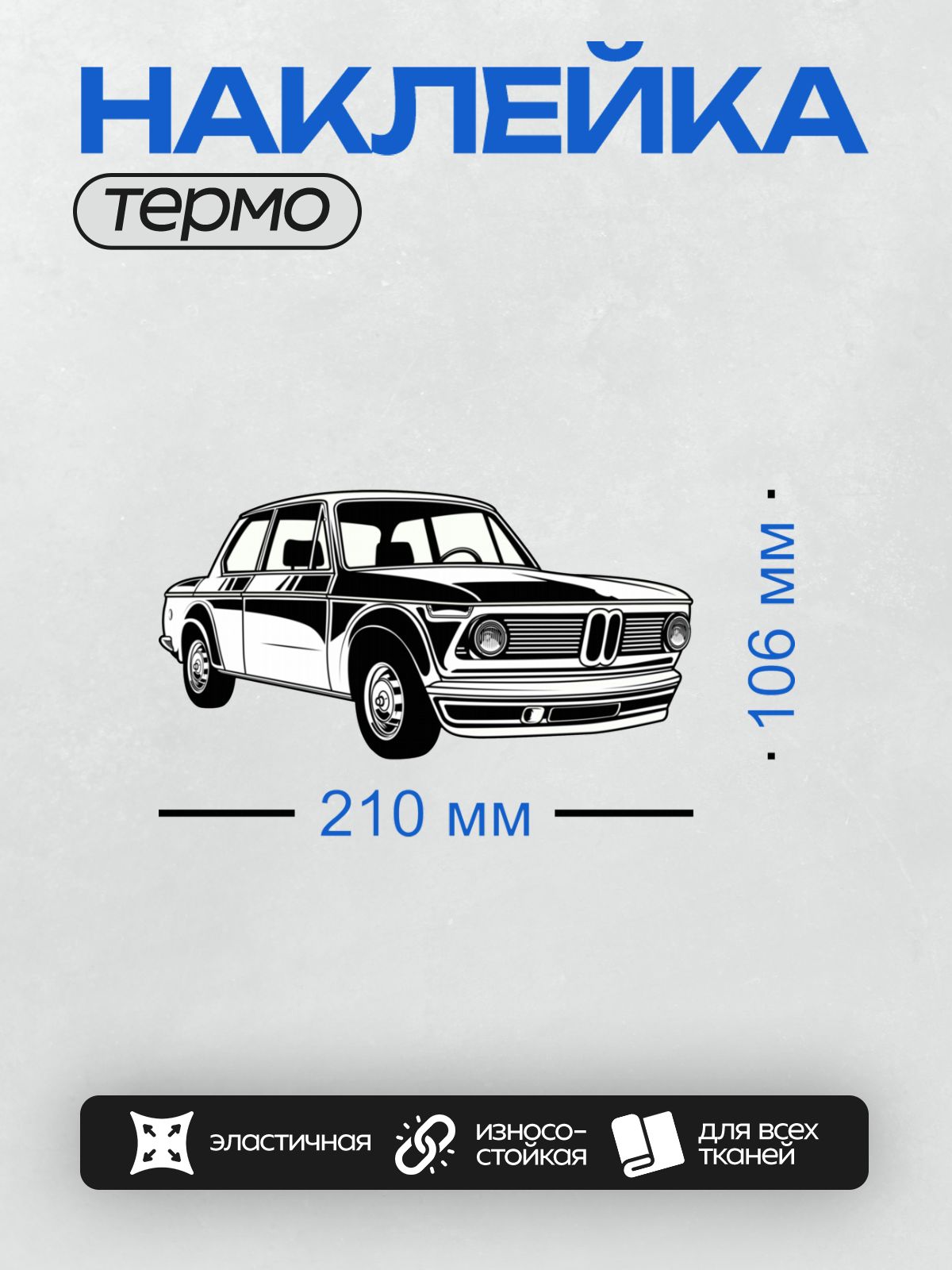 Дизайн: Черно-белый рисунок автомобиля BMW 2002 Turbo. — идеально подходит для декора и восстановления одежды.