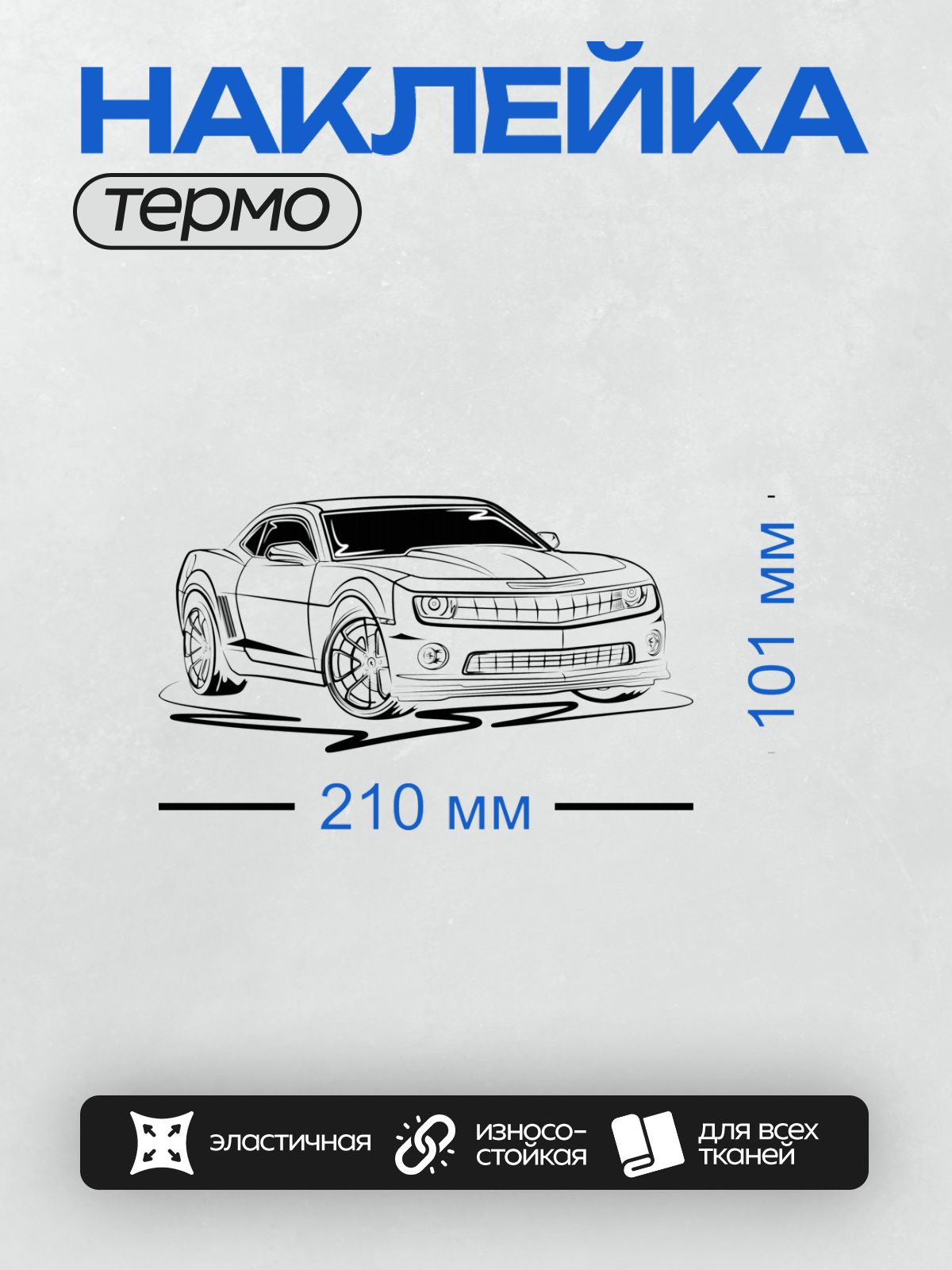 Дизайн: Черно-белый Chevrolet Camaro, вид спереди. — идеально подходит для декора и восстановления одежды.
