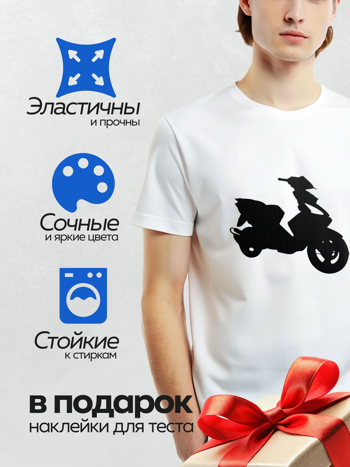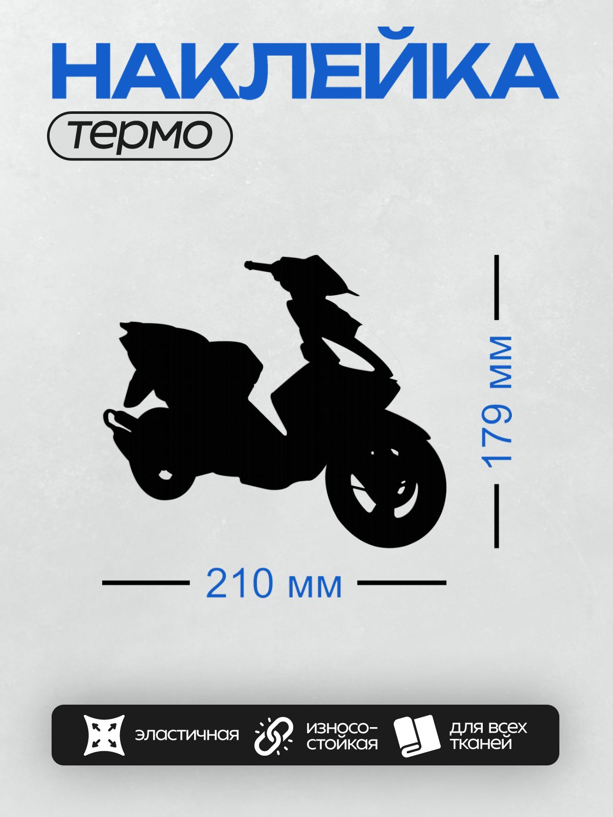 Термонаклейка на одежду DTF / Черный силуэт мопеда на белом фоне.