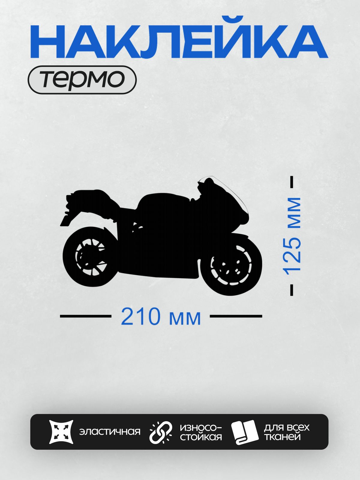 Дизайн: Черный силуэт мотоцикла на белом фоне. — идеально подходит для декора и восстановления одежды.