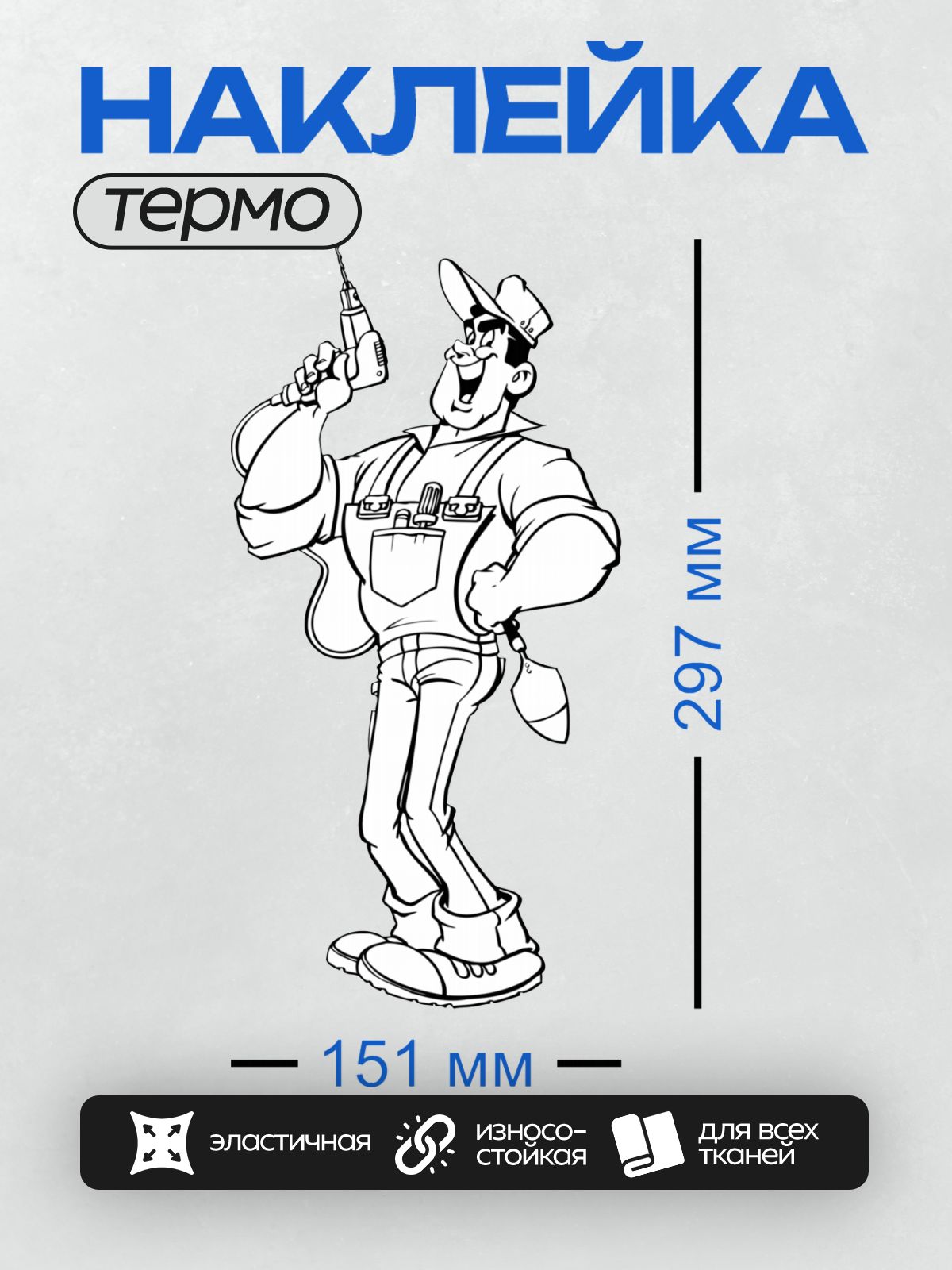 Термонаклейка на одежду DTF / Электрик с дрелью, в рабочей одежде, улыбается.