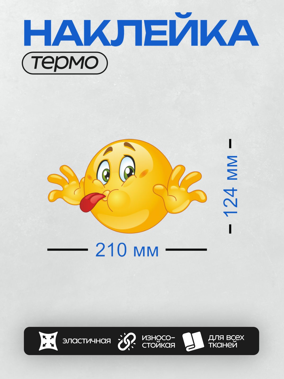 Термонаклейка на одежду DTF / Эмодзи с высунутым языком и поднятыми руками.