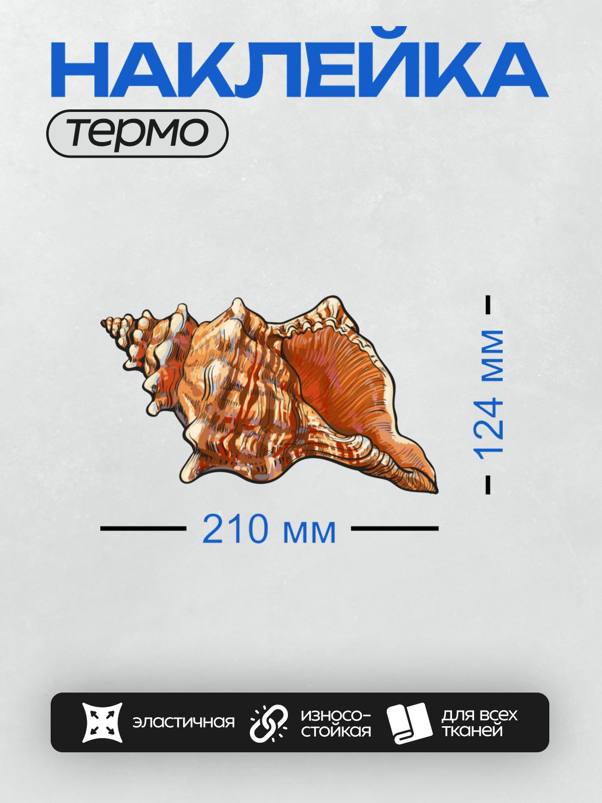Термонаклейка на одежду DTF / Яркая морская раковина конх с оранжевыми оттенками.