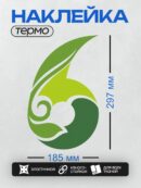 Термонаклейка на одежду DTF / Абстрактный зеленый узор с элементами листа и спирали.