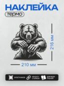 Дизайн: Агрессивный медведь с открытой пастью, черно-белый стиль. — идеально подходит для декора и восстановления одежды.