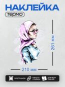 Термонаклейка на одежду DTF / Акварельный портрет девушки в розовом платке и очках.