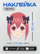 Термонаклейка на одежду DTF / Аниме-девушка с розовыми волосами и красными глазами.