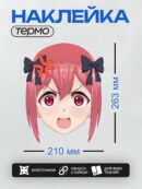 Термонаклейка на одежду DTF / Аниме-девушка с розовыми волосами, большими красными глазами, двумя черными бантиками по бокам и красным бантиком сверху.