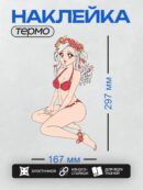 Дизайн: Аниме-девушка в красном купальнике с венком из цветов. — идеально подходит для декора и восстановления одежды.
