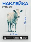 Термонаклейка на одежду DTF / Белая корова с черными пятнами на фоне травы.