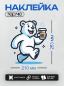 Дизайн: Белый медведь с чашкой кофе, мультяшный стиль. — идеально подходит для декора и восстановления одежды.