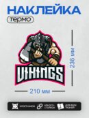 Дизайн: Викинги с топором, шлемом и надписью “VIKINGS”. — идеально подходит для декора и восстановления одежды.
