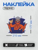 Термонаклейка на одежду DTF / Викинг в шлеме с рогами показывает большой палец вверх.
