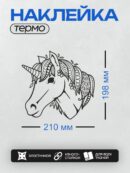 Термонаклейка на одежду DTF / Голова единорога с волшебным рогом и узорами.