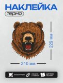 Термонаклейка на одежду DTF / Голова медведя, рычит, агрессивное выражение.
