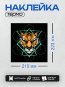 Термонаклейка на одежду DTF / Голова тигра с красными глазами и геометрическим узором.
