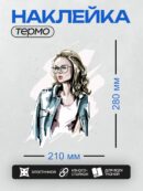 Термонаклейка на одежду DTF / Девушка в джинсовой куртке, очках и с яркой помадой.