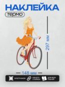 Дизайн: Девушка в оранжевом платье в горошек едет на велосипеде. — идеально подходит для декора и восстановления одежды.