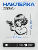 Дизайн: Девушка в ретро-стиле с револьвером в руке. — идеально подходит для декора и восстановления одежды.