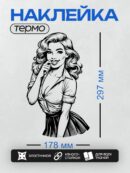 Термонаклейка на одежду DTF / Девушка в стиле пин-ап с длинными волнистыми волосами, в короткой юбке и рубашке с закатанными рукавами. Она слегка наклонилась вперёд, подмигивает и игриво показывает язык. Её образ подчёркивает женственность и кокетливость, характерные для стиля пин-ап.