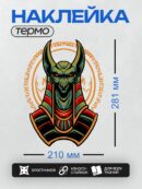 Термонаклейка на одежду DTF / Египетский Анубис с красными глазами и орнаментом.