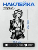 Термонаклейка на одежду DTF / Женщина в ретро-стиле: пиджак, рубашка, волнистые волосы.
