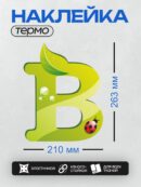 Термонаклейка на одежду DTF / Зеленая буква “B” с листом, каплями воды и божьей коровкой.