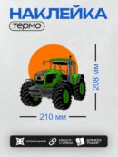 Дизайн: Зелёный мультяшный трактор на фоне оранжевого круга. — идеально подходит для декора и восстановления одежды.