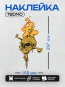 Термонаклейка на одежду DTF / Золотой череп с топорами, пламенем и кровью.