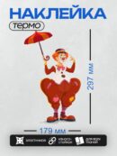 Термонаклейка на одежду DTF / Клоун с зонтом, яркими штанами и сердечком.