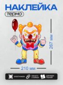 Термонаклейка на одежду DTF / Клоун с красным носом, острыми зубами и шаром.