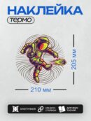 Дизайн: Космонавт в скафандре с ракетным ранцем летит в космосе. — идеально подходит для декора и восстановления одежды.