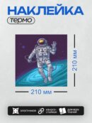 Дизайн: Космонавт в скафандре парит в космосе на фоне звёзд и планеты. — идеально подходит для декора и восстановления одежды.