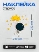 Термонаклейка на одежду DTF / Космонавт держит воздушные шары в форме звезд.