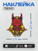 Дизайн: Красный Анубис в золотом египетском головном уборе. — идеально подходит для декора и восстановления одежды.